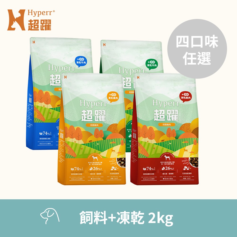 【任選】Hyperr超躍 2公斤 3件組 狗狗無穀飼料+凍乾 (狗凍乾|主食)