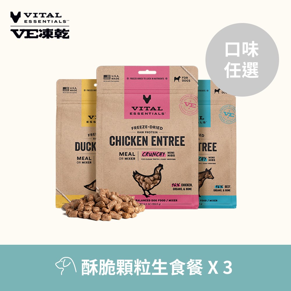 【任選】VE凍乾 397克 3件組 狗狗酥脆顆粒生食餐 (狗飼料|冷凍乾燥)