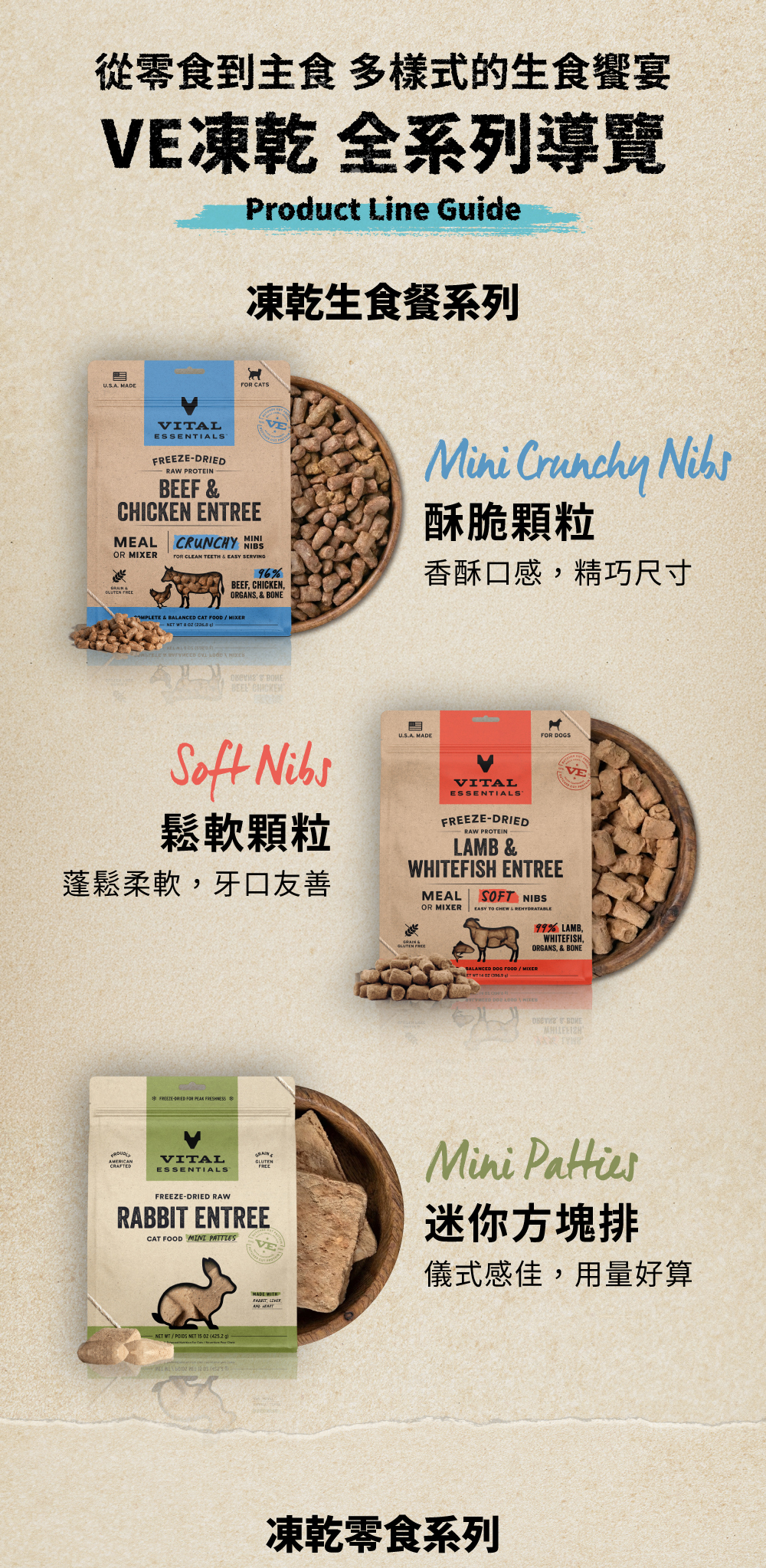 VE凍乾 全系列 犬貓生食餐 (多樣化顆粒|新鮮肉塊製作)