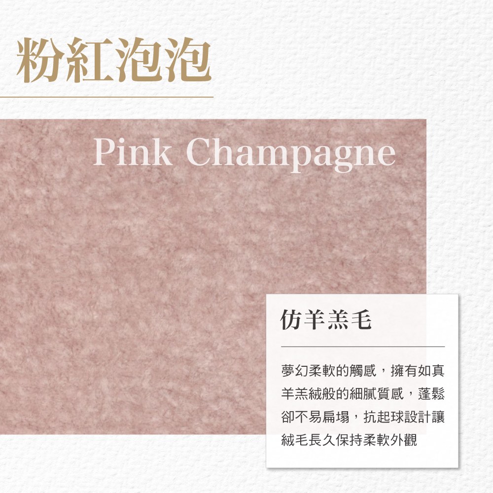 仿羊羔毛:纖維細緻柔軟,觸感溫潤親膚,在呈現自然蓬鬆質地的同時,兼顧耐磨度與結構穩定性。長時間使用仍能維持良好回彈,不易塌陷。