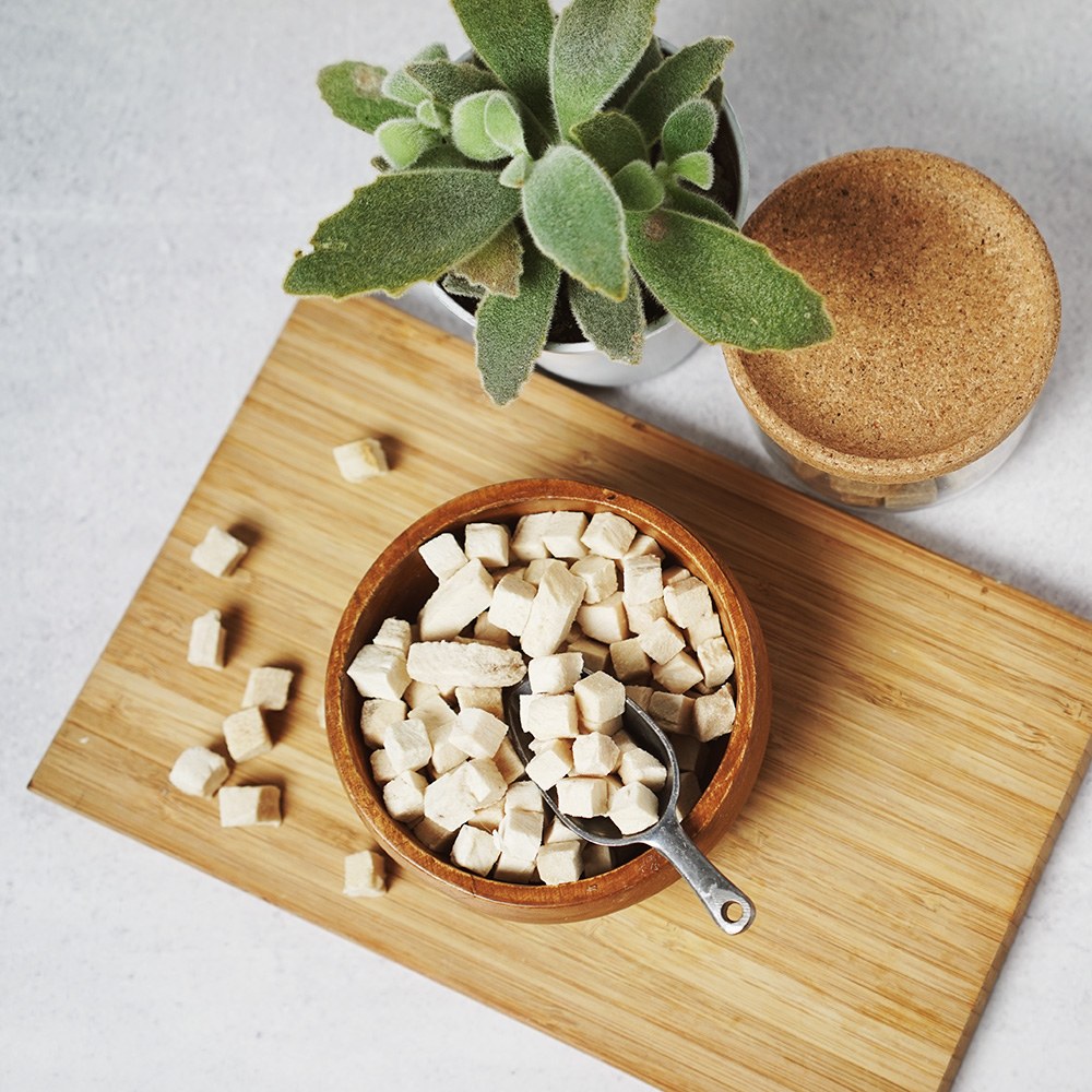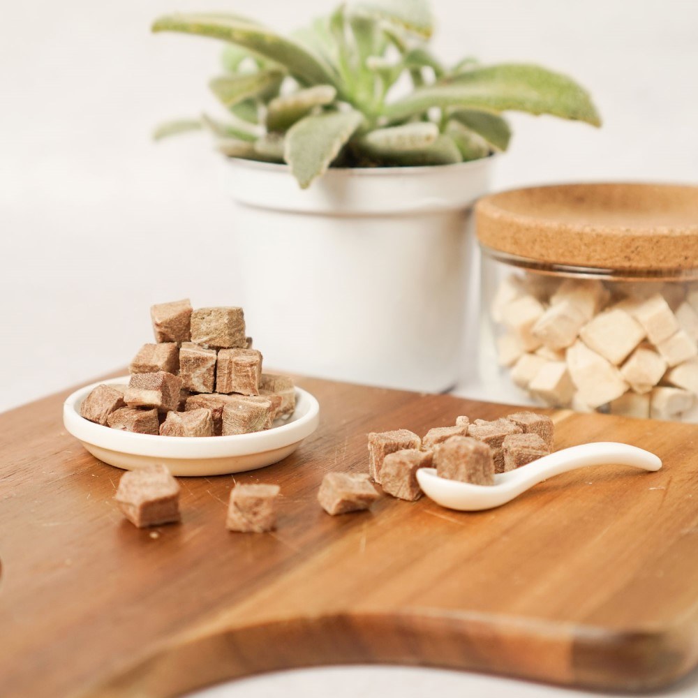 凍乾製作的口感相對比較鬆軟,若牙口較為不好的毛孩,也可以泡水餵食唷!
